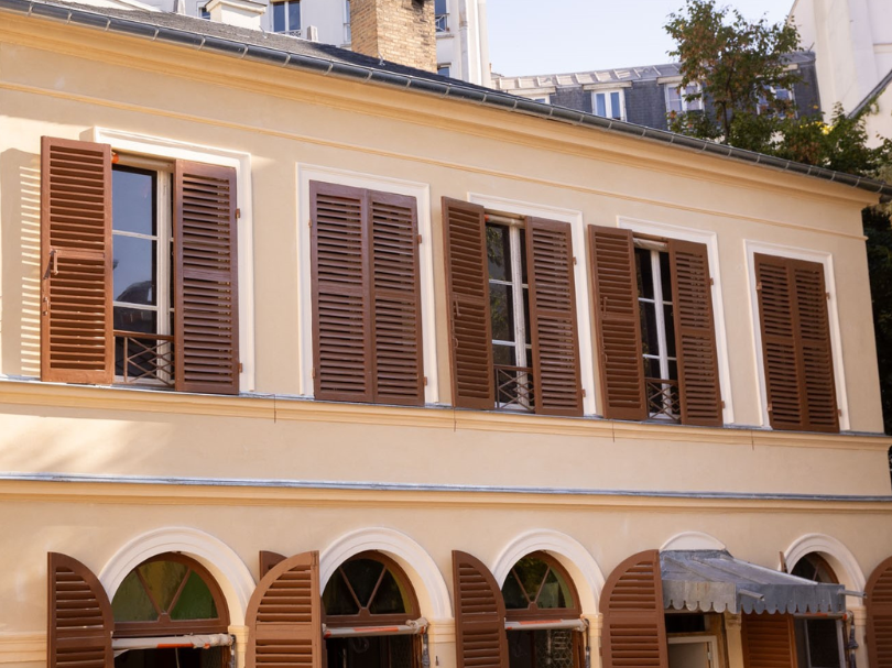 La maison d’Ary Scheffer, construite en 1830, a été restaurée avec un soin rare. Façades à la chaux, volets restitués dans leur teinte d’origine, menuiseries et toitures rénovées selon les techniques du XIXᵉ siècle : chaque détail a été pensé pour retrouver l’allure authentique de cette demeure romantique.