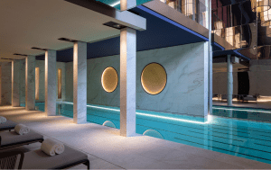 En effet, l’espace se veut être un cocon loin du monde, des cabines privatives ultraluxes autour de la piscine au décor minéral, en passant par les cabines de soins, pensées avec un sas d’entrée et dressing, telle une suite…